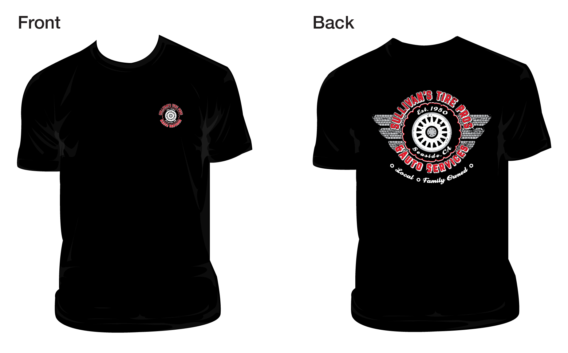 This new logo for Sullivan’s Tire Pros and Services was made to resemble vintage gas station signs. The design was made to accommodate a 3 color print on black garments.